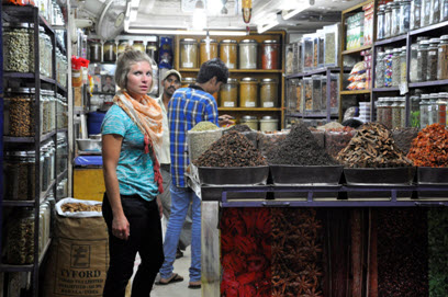 So, here’s what I ended up bringing with me: mostly SAMBA. I tell you what; I’m not sure what I would’ve done without my Samba V-Tees (long and short sleeved of course). Well, actually I can tell you exactly what I would’ve done – there would be plenty of photographic evidence of a beet red, sweaty, frizzy-haired, soaking wet, smelly, smelly white girl in India. Instead, thanks to Title Nine, I maintained a reasonable body temperature (and moisture level, for that matter) and was free to explore and enjoy my surroundings. Culturally, shoulders should be covered at all times and any obvious ‘chest’ should be concealed. But the hot and humid weather disagreed. The tencel blended with cotton and spandex of the Samba fabric performed above expectations. It resisted odor like a champ, wrinkles shook out like an instant face-life, and breathed like… Lance Armstrong. If I had been thinking straight, I would’ve packed my Samba dress (Amelia) and skirts (Amelia and Cha Cha)! Burnouts from Prana proved invaluable as light, breathable layers and cover-ups. Here’s the Chai Tee in action at a spice market in Koch: